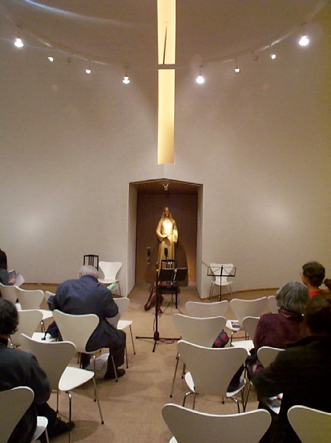 真中の椅子の傍らに置いてあるのがダブル・ハープ(ルネサンス時代のハープ?)