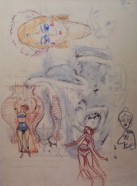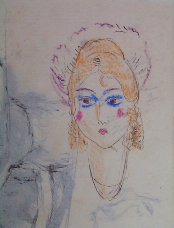 安井隆 「素描」 (ペン、色鉛筆) 制作年不詳